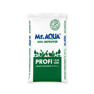 At the same time, it has excellent retention parameters. At 20 °C at the root depth, Mr.AQUA retains water for at least 7 to 9 days, at 40 °C at the root depth (i.e. even higher surface temperature) for up to 48 hours. Mr.AQUA improves the water regime in the soil and thus becomes more comfortable for the plants.